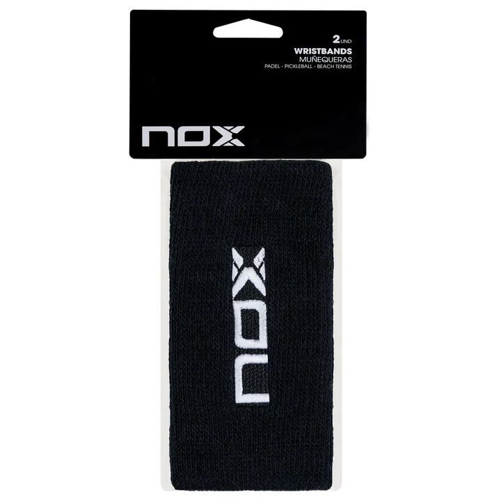 Keep your wrists protected during every shot with the longer version of the NOX Padel Sport Wristbands in black with a white logo. Maximum comfort thanks to the cotton fabric combined with Nylon and Polyester fibers.
